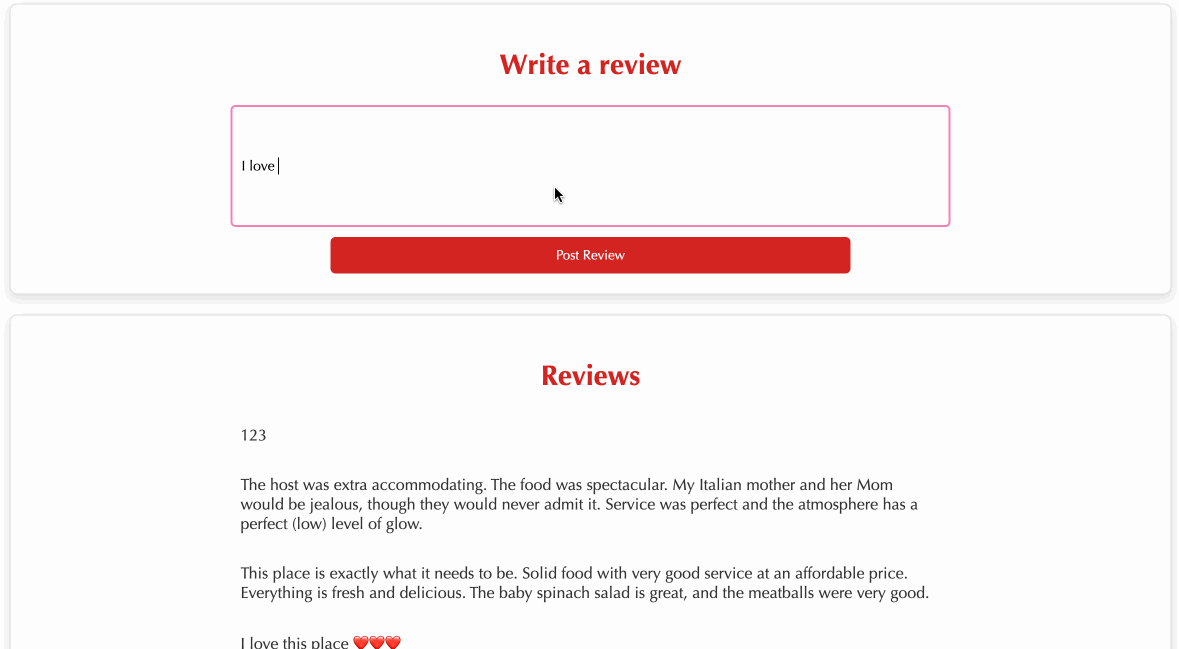 To keep the platform dynamic, we allow users to add their favorite restaurants. When a user submits the form, the restaurant is instantly added to the Firebase database and displayed on the homepage, making the platform a continuously growing collection of NYC dining spots.