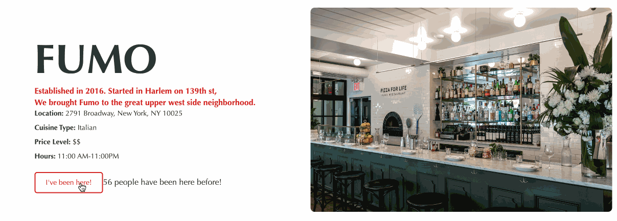 To encourage user engagement, we added a community check-in feature where users can click "I've been here!" to indicate they’ve visited a restaurant.