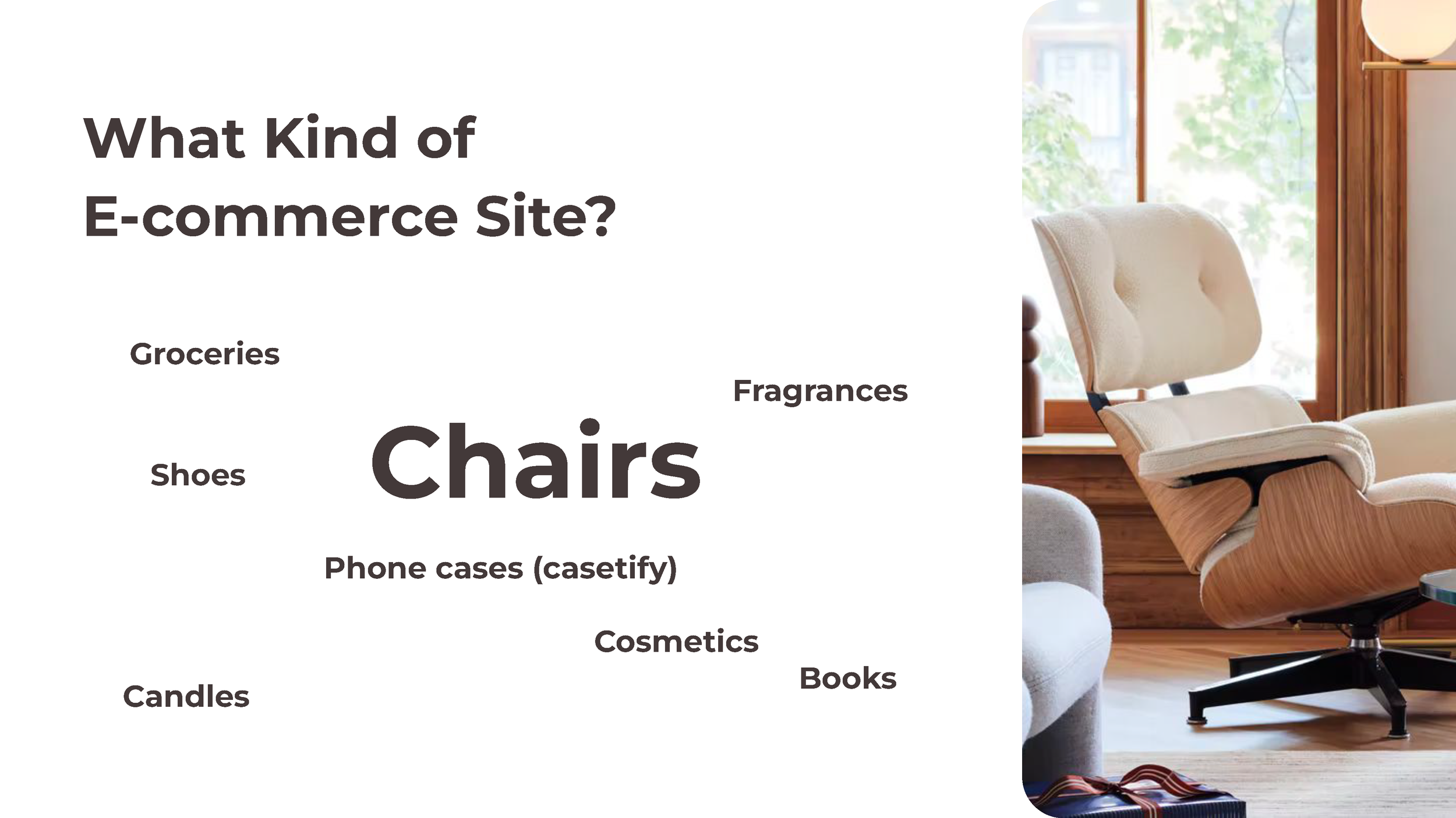 At the start of this project, I explored different e-commerce ideas: groceries, shoes, cosmetics but none felt quite right. I wanted something that blended design, functionality, and storytelling, and that’s when designer chairs stood out.